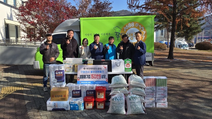 화천라이온스클럽(회장 전환구)에서 화천군사회복지협의회(회장 나병학)에 쌀, 휴지, 주방용품 등 150만원 상당의 생필품을 기탁했습니다.