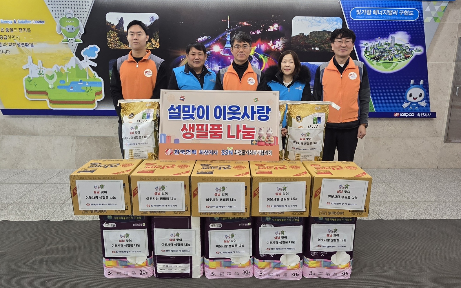 한국전력 화천지사(지사장 김양근)은 설 명절을 맞아 지역 내 취약계층을 위한 이웃사랑 생필품을 화천군사회복지협의회(회장 나병학)에 전달했다.